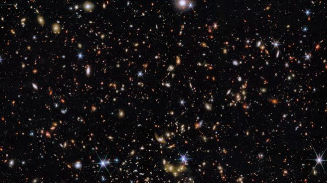 Evrenin derinliklerine dair en net görüntüleri sunmaya devam eden James Webb Uzay Teleskobu (JWST), 12 milyar ışık yılı ötedeki binlerce galaksiyi aynı karede yakalayarak bilim dünyasını bir kez daha heyecanlandırdı.